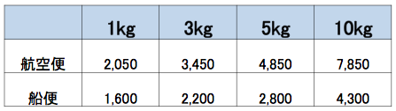 出典:日本郵便 https://www.post.japanpost.jp/int/download/charges.pdf