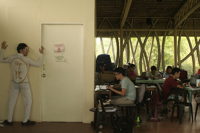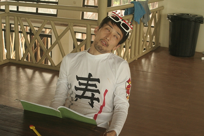 当初はこの格好で食堂でご飯を食べるシーンを撮影しようと思いましたが、上からストップがかかりました。